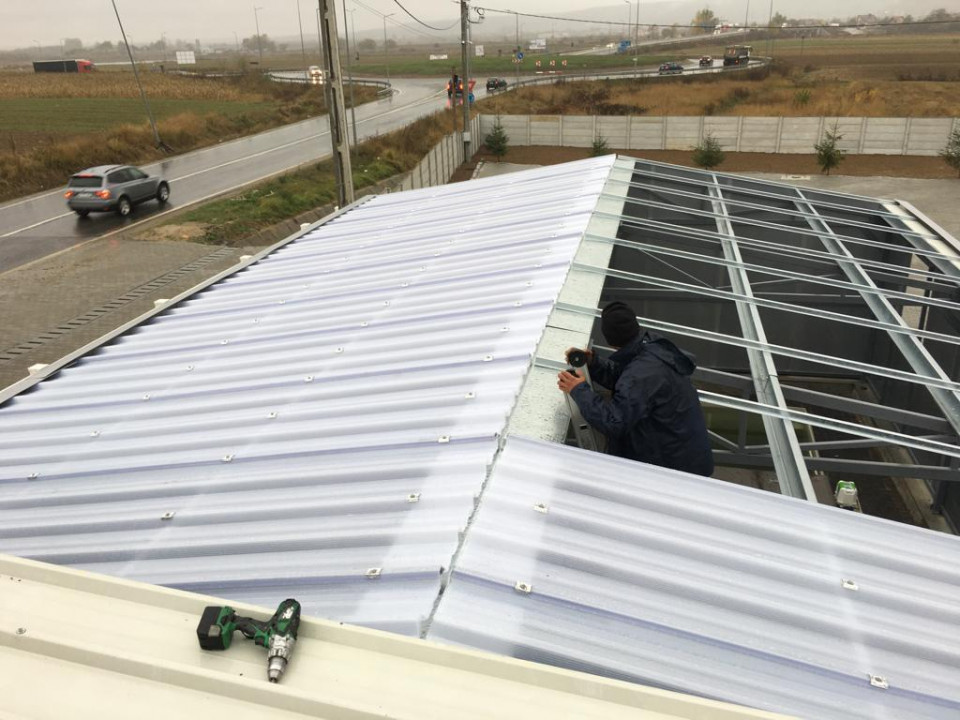 Luminatorul GRECA G5 este un produs premium si este compatibil cu panourile care au 5 cute(ISOPAN, TOPANEL, etc) Luminatorul GRECA G5 este folosit pentru realizarea acoperișurilor ondulate translucide în domenii industriale, civile și sportive. Panouri de tip fagure cu grosimea de 12mm, 16mm cu profil cutat cu ajutorul carora se pot realiza atat acoperisuri mari continue datorita posibilitatii de suprapunere laterala ca solutie de imbinare usoara si eficienta, cat si luminatoare plate si curbate. Luminatorul GRECA G5 este așadar o gamă concepută pentru aplicații de acoperișuri mari și mici: pentru stadioane, facilități sportive, decoruri, verande, garaje, parcări centre comerciale, depozite, adăposturi, copertine, sere și creșe etc... Produs: PREMIUM Gama: INDUSTRIALA Specificatii: Caracteristici: Culoare: transparent satinat Numar de cute: 5 grosime 12mm (3 pereti), 16 (structura honeycomb) latime utila 1000mm dilatarea liniara 0,065mm/m°C stabilitate termica -40°C +120 °C Clasa de foc EuroClass B-s1,d0 transmisia luminii 70% raza minima de curbura 2m garantie 10 ANI. made in ITALY Avantaje: - asigura lumina necesara pe tot parcursul zilei reducand astfel costurile pentru iluminare. - se poate monta de la coama la streasina sau doar in partea de coama iar in continuare se poate suprapune peste panou. - montaj usor si pe constructiile deja acoperite cu panouri prin inlocuirea unui panou cu luminator GRECA - disponibil cu lungimi de pana la 13,5m pentru optimazare optima cu pierderi minime. TRATAMENTE SPECIALE SERVICII DEDICATE: Debitare la dimensiune ; Thermosudare la capete - inchidem thermic capetele pentru evitarea aparitiei infiltartiilor si a prafului in interiorul placilor. Descarcă FISA TEHNICA A PLACII (TDS) : TDS greca 12MM TDS greca 16MM Pentru montaj corect utilizeaza ghidul de montaj si accesoriile recomandate. GHID MONTAJ GRECA ACCESORII COMPATIBILE . În situația în care aveți nevoie de alte lungimi decât cele disponibile pe site vă rugăm să ne contactați telefonic sau să completați formularul de contact disponibil pe site.