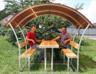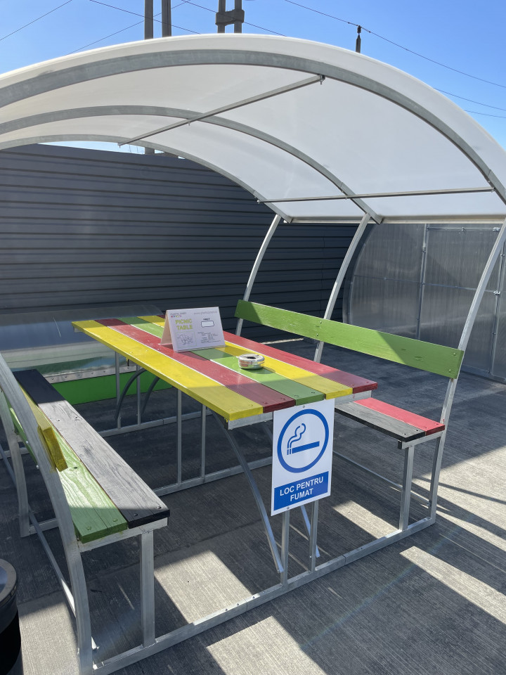 Picnic Table sau relaxarea in gradina!!! Poate fi folosit si ca loc pentru fumat in institutii, fabrici statii de autobuz etc Coletul include structura zincata, sipci rindeluite si suruburile de fixare. Realizate din tevi zincate demontabile care pot fi asamblate cu usurinta. Pretul include acoperisul din POLICARBONAT PREMIUM 5G cu grosimea de 10mm si lungime de 3M FISA TEHNICA PICNIC TABLE