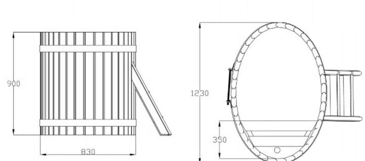 STRUCTURA SI MATERIALE: • Pereți: realizați din lemn masiv de molid suedez premium rezistent la temperaturi ridicate, cu o umiditate de 14%, rezistent la crapaturi si avand o durata de viata de peste 15 ani. Grosimea peretilor 45mm oferind o izolatie premium de lunga durata • Capacele: realizate din lemn stratificat