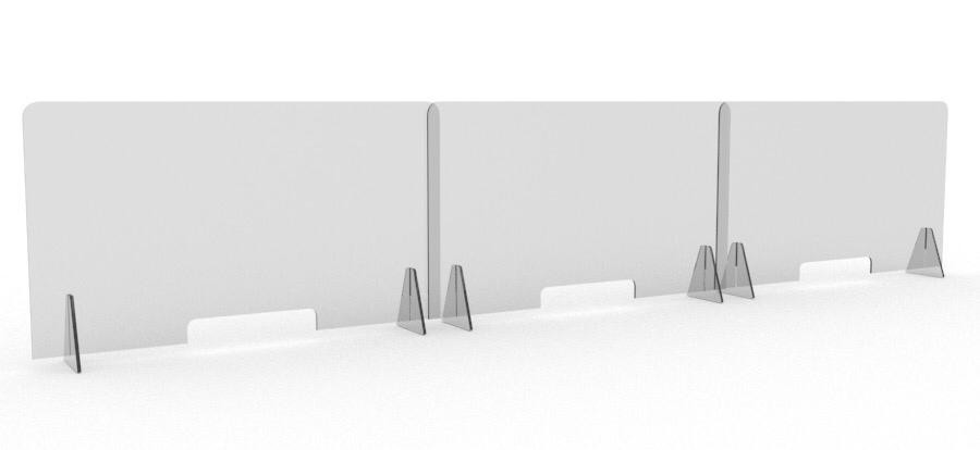 PREȚUL SE ACTUALIZEAZĂ AUTOMAT ÎN MOMENTUL ÎN CARE SE VOR SELECTA TOATE OPȚIUNILE PANOULUI!!! TRANSPORTUL ESTE GRATUIT PENTRU COMENZI MAI MARI DE 999 DE LEI!!! !!! PANOUL POATE FI COMANDAT ÎN ORICE DIMENSIUNE - DREPT SAU CURBAT!!! Claritate și rezistență mare la impact Panourile de protecție sunt confecționate din placi transparente plexiglas , cu o t ransparență de cristal inerentă , cu o greutate redusă si cu o rezistență mult mai mare decat sticla de aceeasi grosime. Barieră de protecție Panourile de protecție pot fi utilizate în industria farmaceutică, alimentară, în sistemul bancar, precum și în orice activitate care presupune lucru cu publicul, asigurând o barieră de protecție atât pentru angajați, cât și pentru clienți. Panourile de protecție pot fi utilizate în prevenirea răspândirii virusurilor prin împiedicarea contactului direct între angajați și clienți. Panourile de protecție pot fi curățate cu ușurință cu apa și săpun. Montare ușoară și fixare de durată Panourile de protecție beneficiază de un design revoluționar și pot fi montate cu ușurință pe un birou sau pe orice suprafață orizontală, fără prinderi complicate, fără șuruburi și fără a fi nevoie de instrucțiuni de montare. Acestea au aplicate pe elementele de suport o banda dublu adeziva 3M pentru o fixare puternică de durată. Panourile de protecție conțin și elementele de suport produse din plexiglass cu grosimea de 6 mm, care sunt debitate laser pentru o potrivire perfectă. Panourile de protecție pot fi furnizate întregi sau cu un orificiu în partea de jos prin care pot fi schimbate documente, sume de bani, pot fi efectuate plăți prin intermediul POS etc. Adaptare la nevoile clientului Pretul se poate negocia în funcție de cantitate. În situația în care aveți nevoie de alte lungimi decât cele disponibile pe site vă rugăm să ne contactați telefonic sau să completați formularul de contact disponibil pe site.