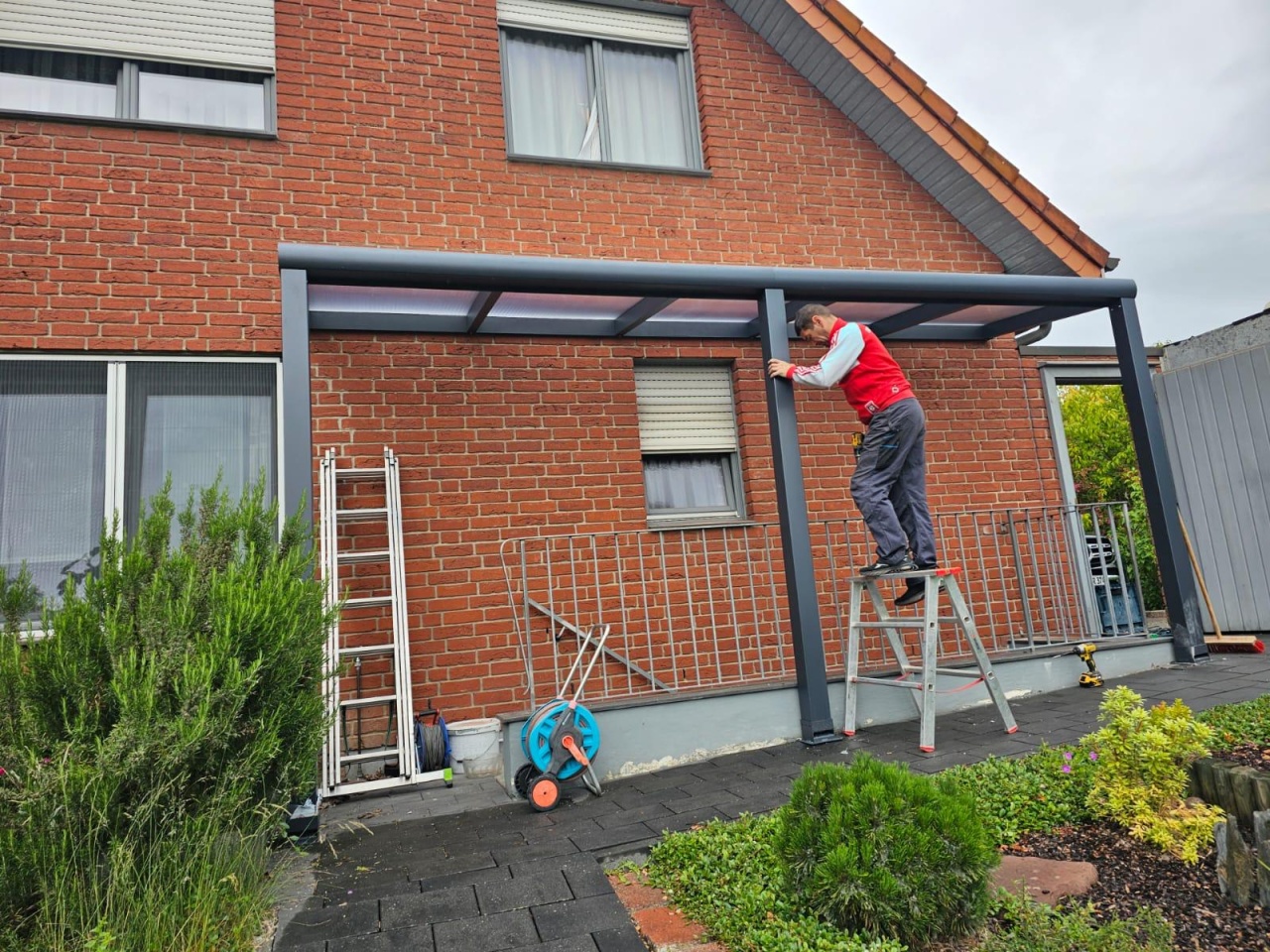 🌤️ Pergola din aluminiu – armonia dintre natură și rafinament Imaginează-ți un colț de liniște chiar la tine acasă — un spațiu unde lumina soarelui se joacă printre grinzile elegante din aluminiu si policarbonat, iar briza ușoară te învăluie într-un moment de relaxare perfectă. Pergola din aluminiu transformă orice terasă, grădină sau balcon într-un refugiu modern, unde confortul se împletește cu frumusețea designului. Pergola din aluminiu este o structură modernă, elegantă și durabilă, concepută pentru a oferi protecție solară și spațiu confortabil în aer liber. Realizată din profile solide de aluminiu extrudat, aceasta combină rezistența cu un design minimalist, adaptându-se perfect oricărui stil arhitectural – de la case contemporane la terase de restaurante sau hoteluri. Fiecare detaliu este gândit pentru tine: • Material: Aluminiu vopsit electrostatic RAL 7016 direct in fabrica, elementele avand grosimi si greutati care pot face fata oricaror incarcari(exemplu: grosime jgheab 3.2mm si greutate 6,45 kg/m) rezistent la coroziune, ploaie și radiații UV. • 🌞 Acoperiș: Policarbonat solid / compact 10mm sau multiwall 16mm produs in ITALIA cu 10 ani GARANTIE • 🌧️ Sistem de drenaj integrat: Apa de ploaie este direcționată prin stâlpi, menținând spațiul uscat. • 💡 Suruburi de fixare din inox • ⚙️ Montaj: Poate fi autoportantă (independentă) sau atașată de fațada clădirii. • 🧼 Întreținere minimă: Aluminiul nu ruginește și se curăță ușor doar cu apă și detergent neutru. Avantaje: • Design modern și versatil; • Rezistență excelentă în timp; • Confort termic și protecție pe tot parcursul anului; • Crește valoarea estetică și funcțională a spațiului exterior. Descarca: Fisa tehnica