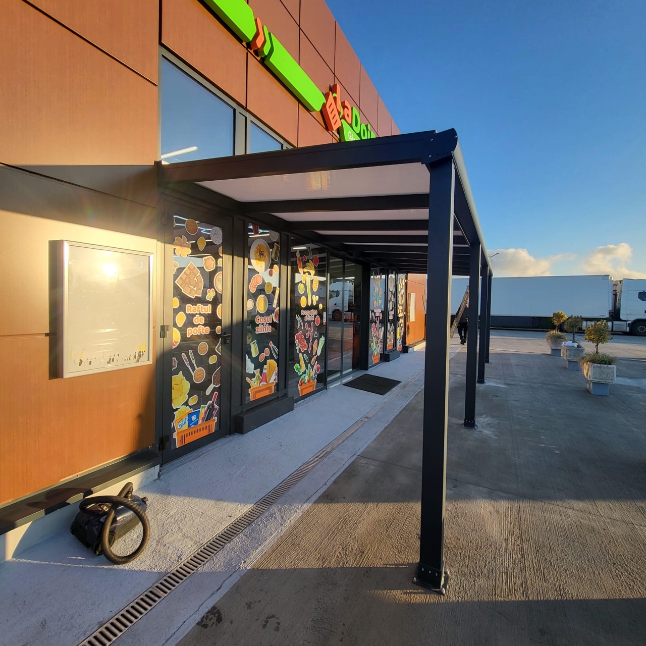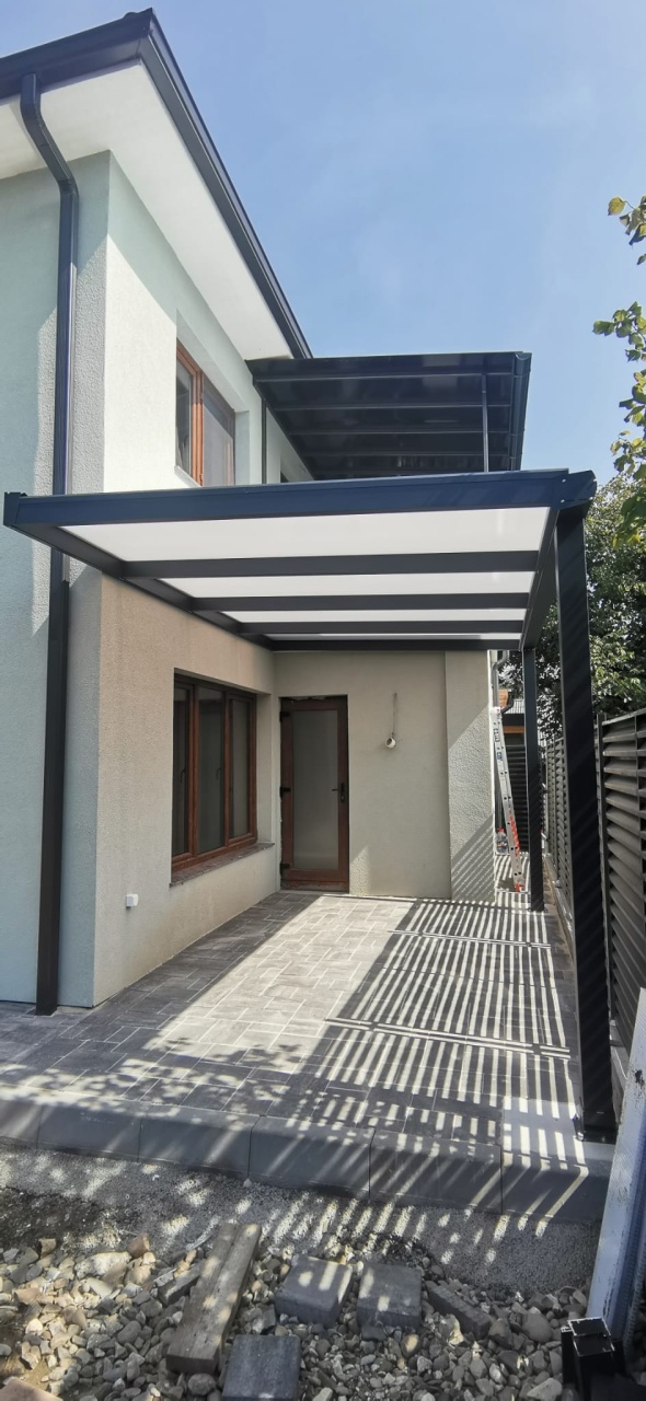 Pergolă pe structură din aluminiu și policabonat solid / compact 2UV