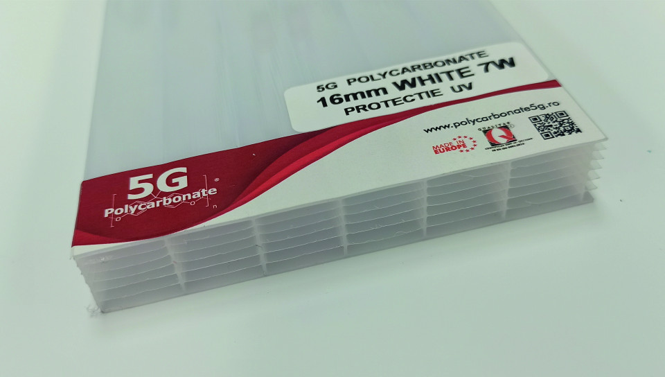 COMANDA MINIMA LIVRATA PENTRU ACEST PRODUS ESTE DE 2000RON + TVA Acest produs necesita livrare cu flota Plastic Prest care poate fi diferit in functie de locatie si valoarea comenzii. Pretul se va calcula impreuna cu un consultant de vanzari. Pretul afisat automat pentru transport este valabil doar pentru comenzile ce pot fi trimise prin curier. 5G POLYCARBONATE este varful de gama al placilor din policarbonat, fiind produs cu strictete la cele mai inalte standarde europene. Produs: COMPATIBIL Gama: PROFESIONALA Caracteristici policarbonat 5G PREMIUM: 100% polycarbonate virgin material (0% recyclat) in placa. rezistență crescută la impact cu grindina, protecție UV premium 50microni, ignifug, clasa B, s1 D0, pereti: 2, 3, 4, 5X, 7, 11X ușor de prelucrat și manevrat, permite o transmisie excelentă a luminii, rezistă la temp. de - 40/ +120 grade C, garantie 10 ani. Avantaje policarbonat 5G PREMIUM: respecta normele europene de greutate/grosime; beneficiaza de numeroase teste de calitate regasite in TDS; stucturi portante n X; culori si lungimi variate; rezistenta sporita la ingalbenire datorita stratului de UV de 50mic. Aplicatii policarbonat 5G PREMIUM: pergole; luminatoare; sere de mari dimensiuni; piscine (coeficient termic excelent); panouri de protectie, car wash Notiuni elementare policarbonat 5G PREMIUM: : radiatia UV reprezinta radiatia ultravioleta avand ca efect decolorarea, sau distrugerea materialului facandu l casant in cazul in care nu are portectie UV radiatia IR reprezinta radiatia infrarosu, practic caldura de la soare. RECOMANDARI CULORI policarbonat 5G PREMIUM: Culoare CLAR Sere -plantele au nevoie de cat mai multa caldura si lumina. Culoarea OPAL Pergole, luminatoare, spalatorii, piscine - asigura o lumina uniforma prin diminuarea efectului de fulger si lupa(efect care apare la bronz sau clar), diminuarea efectului de sera. Culoarea BRONZ Pergole, piscine sau acolo unde se doreste o nuanta apropiata de lemn sau alte culori. Descarca TDS policarbonat 5G PREMIUM: Polycarbonate 5 G 4 mm , Polycarbonate 5 G 6 mm , Polycarbonate 5 G 8 mm , Polycarbonate 5 G 10 mm , Polycarbonate 5 G 10 mm 4W , Polycarbonate 5 G 16 mm 5X , Polycarbonate 5 G 20 mm 5X , Polycarbonate 5 G 25 mm 5X . Polycarbonate 5 G 25mm 11X . Pentru alte solicitari cum ar fi: alta structura a peretilor, lungime, culoare adresati va departamentului de vanzari telefonic sau completați formularul de contact disponibil pe site Pretul se poate negocia în funcție de cantitate. . MONTEAZA CORECT!!!! - POLICARBONAT GHID (descarca PDF)