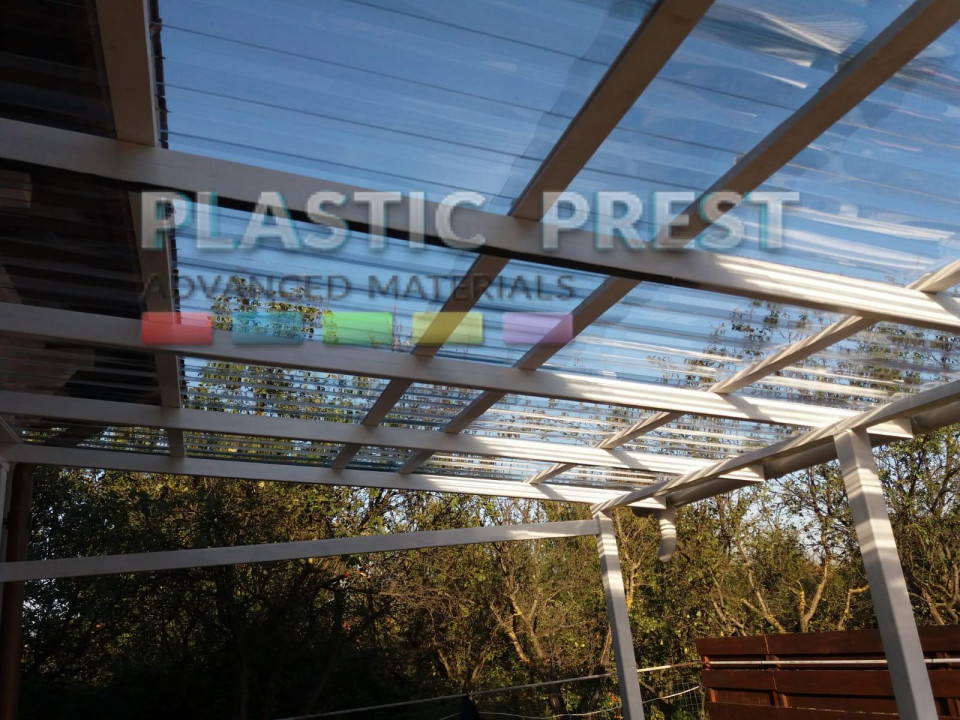 PREȚUL SE ACTUALIZEAZĂ AUTOMAT ÎN MOMENTUL ÎN CARE SE VOR SELECTA TOATE OPȚIUNILE!!! Pentru aceasta gama de produse este necesar transport specializat, costul transportului fiind stabili ulterior in functie de totalul comenzii si de locul livrarii. Pretul afisat automat pentru transport este valabil doar pentru comenzile ce pot fi trimise prin curier. Aceste produse vă oferă o calitate excelentă îmbinată cu proprietăți elastice excelente, precum și o rezistență ridicată la impact. Recomandat pentru acoperișuri de orice fel(curbe sau drepte) datorită rezistenței excelente atat la radiațiile UV, cat si la impactul cu grindina. Caracteristici și avantaje Compatibil cu tabla cutată tip T18 Protecție UV pe o singură față Rezistență ridicată la impact de 250 de ori mai rezistent ca sticla Transparență de cristal inerentă Stabilitate dimensională la temperaturi cuprinse între -40 si +120 grade Celsius. Greutate redusă. Formabilitate la rece, debitare cu orice scule de lemn. Rezistență la foc, practic incombustibil. Culori disponibile: clar, bronz, verde, turcuoaz și opal. Reducerea semnificativă a efectului de seră pentru plăcile de culoare opal. Aplicații tipice Vitraje verticale si orizontale; Aplicații de exterior; Vitraje de siguranța/blindate; Luminatoare hale industriale; Sere și solare. spalatorii; pergole; copertine. RECOMANDARI MONTAJ: - Calculati cu atentie incarcarile pentru golurile respective; - Montati cu partea protejata UV la soare; - Tine ti cont de dilatarea termica 0.065mm/mC,(pregaurire) pentru a evita crapaturile longitudinale. Testul nostru de rezistenta la impact a placii de policarbonat compact CUTAT-TRAPEZ.(click pe youtube)